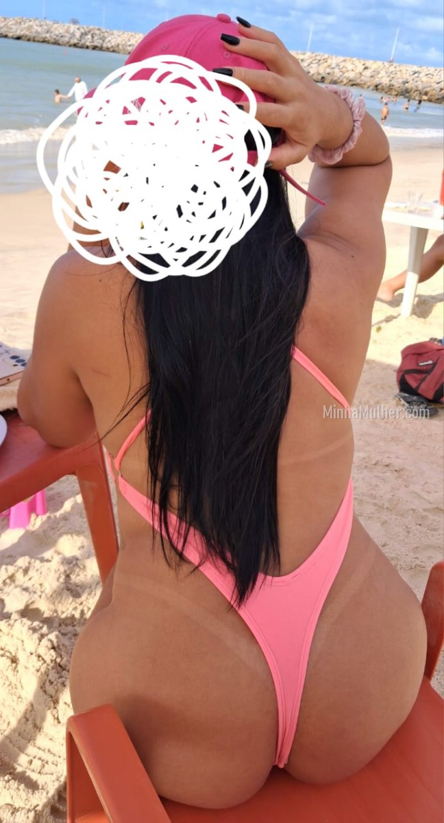 Safadinha, provocando na praia, com essa bunda linda quase toda nua… Eu entendo o tesão do marido corninho, exibindo tua esposa gostosa… Parabéns ao casal.
